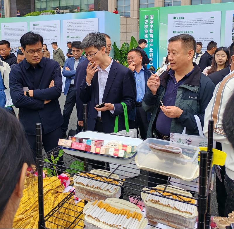在种业芯片展区,我所展示了自育烤烟新品种—豫浓香201和许金101,以及特色烟叶朱砂烟和雪茄烟,这些展品吸引了大量参会人员的关注和驻足品鉴,并给予了充分肯定。烟草新品种的选育和推广,凝聚了烟草育种专家的智慧和汗水,同时也为我省烟区品种更新迭代、农机农艺融合、烟叶质量提升,为科技赋能河南烟区高质量发展贡献了育种力量。