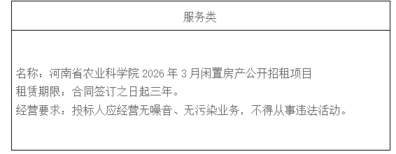 二、项目名称:河南省农业科学院2026年3月闲置房产公开招租项目