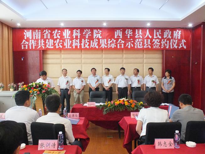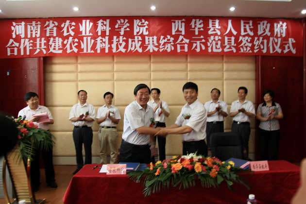 我院启动实施“521农业科技支撑行动计划”以来,西华县委县政府高度重视与我院的科技合作,县主要领导数次来我院共商合作大计,经院主要领导同意,我院决定与西华县合作共建农业科技成果综合示范县,并确定实施种植、养殖方面的6个合作项目,将我院的新品种新技术在西华县集成展示和推广应用,发挥科技示范和引领带动作用,共同打造新型农业科技成果示范推广平台和河南省新型农业现代化示范样板。
