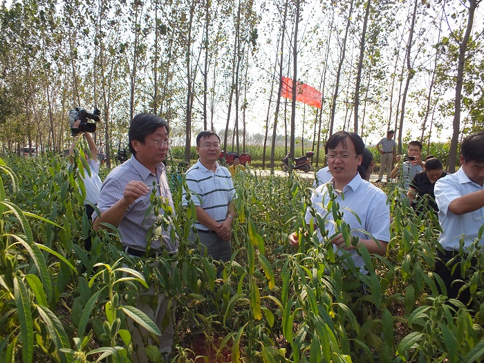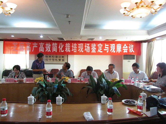 与会领导和专家先后观摩了我院芝麻中心建立在商水县固墙镇和项城市丁集镇的郑芝12号及其高效简化栽培技术百亩、千亩示范方,听取了我院芝麻中心卫双玲研究员有关示范方建设的情况汇报;由中国农科院油料作物研究所、安徽省农科院作物研究所、河南农业大学、省经作站和我院经作所等单位有关专家组成的验收组对两地示范方进行了现场鉴定和测产,测产结果显示,商水、项城两个示范方平均亩产分别为165.7公斤和179.6公斤,其中项城郑芝12号及其高效简化栽培技术千亩示范方亩产创造了国内芝麻千亩连片高产新纪录,取得了良好的示范效果,河南日报和河南电视台等省级新闻媒体予以了及时报道。