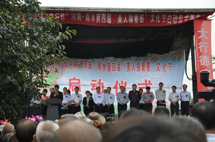 9月13日,由商水县政府主办的“第四届美人指葡萄文化节”在练集镇朱集村美人指葡萄示范基地举行。房卫平副院长应邀出席开幕式。院办公室、园艺所和周口市政府及有关单位负责人,商水县政府有关领导及有关企业负责人,新闻媒体记者等共计300余人参加了开幕式。