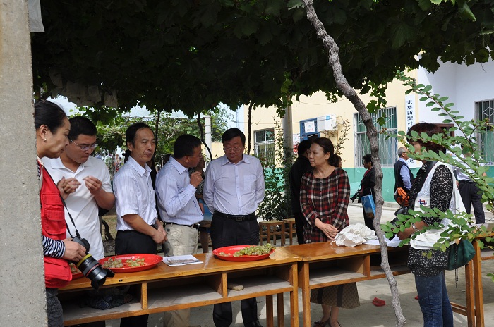 开幕式后,在周口市政府和商水县政府有关领导的陪同下,房卫平副院长参观了练集美人指葡萄基地。房卫平副院长充分肯定了练集美人指葡萄基地取得的显著成绩并提出希望:要力争把该基地打造成一条集旅游观光、品鉴、文化交流于一体的生态休闲旅游基地,不断提升练集美人指葡萄的知名度和影响力,促使练集葡萄种植业形成产、供、销、深加工、游等一体化新产业格局,为我省类似区域发展林果经济提供典型的特色高效农业示范样板,为加快推进新型农业现代化进程,促进中原经济区建设做出新的更大贡献!