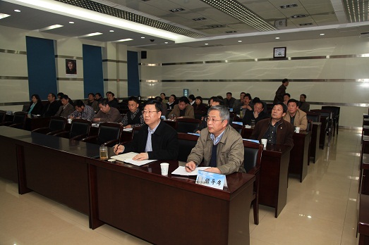2013年3月19日下午,我院召开党委中心组(扩大)学习会议,集中观看了中央党校文史教研部主任周熙明同志作的题为《建设文化强国实现民族复兴》的专题辅导录像。院领导张勋、乔鹏程出席会议,全院处级以上领导干部、处所长助理共计70余人参加了此次学习。