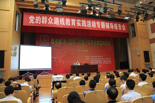 报告会上,段若鹏教授结合全党正在开展的教育实践活动,从群众路线是党的生命线和根本工作路线;“四风”是群众路线的死敌大敌顽敌;聚焦党的作风建设,集中解决“四风”问题等四个方面,进行了全面深刻的阐述,作了深入浅出的讲解。报告坚持理论与实际相结合、历史与现实相结合,内容丰富,寓意深刻,语重心长,既有理论深度,又有很强的现实针对性。与会人员普遍反映,学习后很受教育、深受启发。