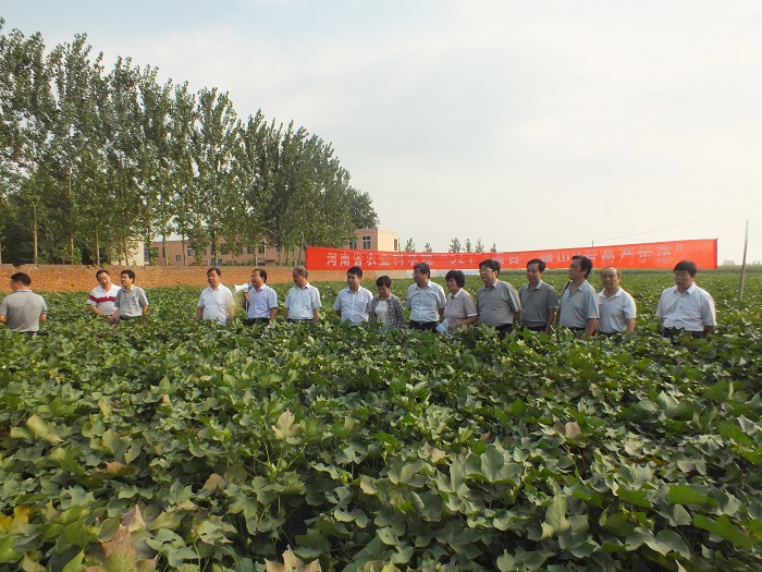 8月30日,我院在延津现代农业综合示范县组织召开“棉花新品种银山8号、银山9号高产示范现场观摩会”,省农业厅副巡视员张立秀出席会议并讲话,我院副院长房卫平研究员,省农业厅经作站书记李国海研究员,省棉花办公室主任刘晓峰研究员,中国农科院灌溉所孙景生研究员,以及院推广处、经作所,新乡市农业局、棉办和农科院,延津县政府及有关部门,中棉种业科技股份有限公司等单位的负责同志和专家,延津县棉花种植户代表等约60余人参加了会议。会议由院推广处副处长李保全主持。