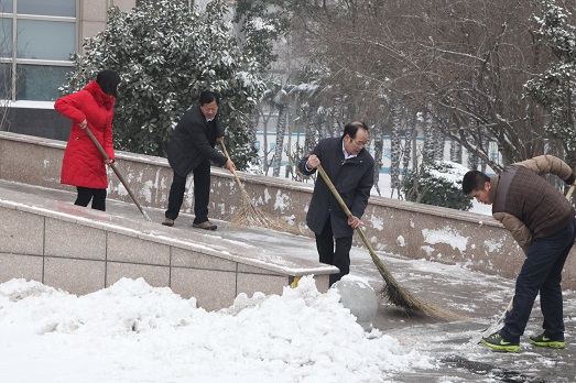 近日,我省普降大雪,路面出现了不同程度的积雪冰冻。为保持我院及周边道路的畅通,方便干部职工和过往群众的安全通行,2月7日,春节假期后的第一个工作日,我院干部职工一大早就开展了义务扫雪活动。