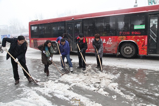 此次活动,领导干部主动带头,广大职工积极参与,院领导班子成员同400余名干部职工一起构筑了一副热火朝天的劳动景象。院直各单位自备铁锹、扫把等清扫工具,在各自的清洁区域内破冰铲雪,开辟了一条条通行道路。院内清扫任务完成后,广大干部职工又到花园路、农科路等周边道路清理马路上的积雪,为周边过往群众开辟出了一条安全畅通的道路,受到了过往群众的一致赞扬。