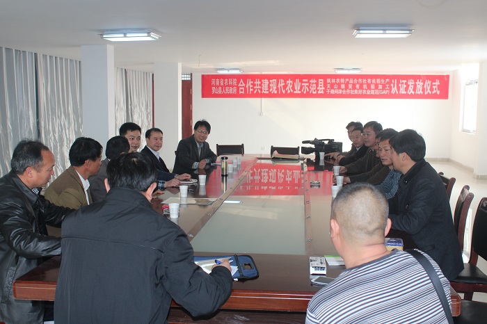 程泽强副县长总结强调,这次简短的授证仪式以及罗山县政府、省农科院与企业和合作社的对接座谈,形式简洁,主题明确,是罗山县开展群众路线教育实践活动以来,为贯彻刚刚召开的信阳市委农村工作会议精神,罗山县委政府和县农科所主动走出机关、走进企业,走进基层、走向农户,送成果、送科技,问需求、问思路,积极谋划罗山农业新发展的重要活动。为把罗山县人民政府和省农科院开展的“院县共建”现代农业综合示范县继续引向深入,为推进罗山农业标准化,为涉农企业的品牌建设和产品升级打下坚实基础......