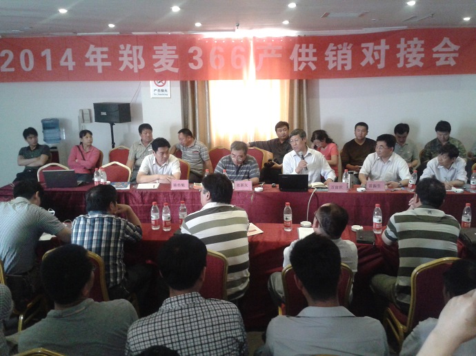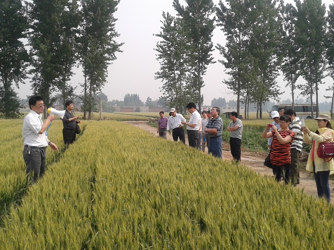 5月19日,我院在安阳县组织召开“优质强筋小麦新品种郑麦366产供销对接“现场观摩会,张新友副院长出席会议并讲话,国家农业部种植业司粮油处处长万富世应邀参会,我院有关单位,安阳市农科院、市粮食局等单位负责同志和专家,中粮河南分公司、中储粮河南分公司和新良集团等20余家省内粮食及面粉企业的采购部负责人,安阳县广源农业种植专业合作社及当地种植户代表等共计60余人参加了会议。会议由我院小麦所副所长雷振生研究员主持。