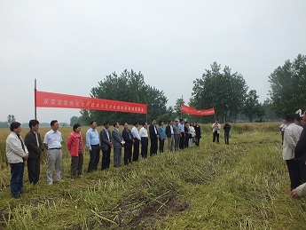 5月17日,我院在罗山综合示范县组织召开“双低油菜简化生产技术示范与机械收获”现场观摩会,院党委书记郭鹏亮、副院长房卫平,省农业厅总农艺师王军茂,省政府参事王志和、毛景英、刘发魁,信阳市副市长包盛柏等领导出席会议,省政府参事室、省农业厅种子管理站和经作站、我院有关单位、信阳市农科院和罗山县委县政府及有关部门的主要负责同志和有关专家,来自罗山、固始、商城、光山、潢川、息县、信阳平桥区、商丘和遂平等9个县(区)农业部门技术人员、农民合作社种植户和河南豫研种子科技公司、湖北宜施壮农业科技有限公司等企业代表共计80余人参加了现场观摩会。会议由我院推广处副处长、罗山县科技副县长程泽强主持。