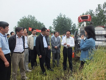 在罗山县子路镇朱湾村,前段时间当地的强降雨天气并未使油菜生产出现大面积倒伏现象,项目区油菜株型健壮、丰收在望。与会领导和专家实地观摩了由我院经作所、信阳市农科院和罗山县农科所联合指导建立的油菜新品种新技术千亩高产示范方,目睹了收割机现场机收作业的喜人场景,对我院油菜新品种及轻简化高效栽培技术的示范效果和良种良法配套、农机农艺结合的做法予以了充分肯定。