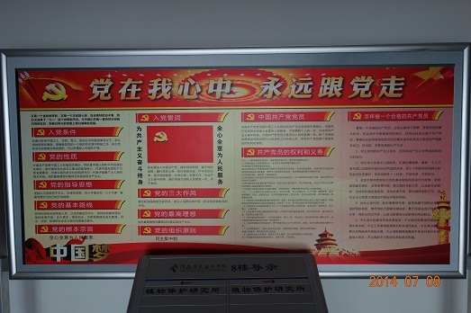 植保所党支部制作了“党在我心中,永远跟党走”宣传栏,宣传党的光辉历程,讴歌党的丰功伟绩。
