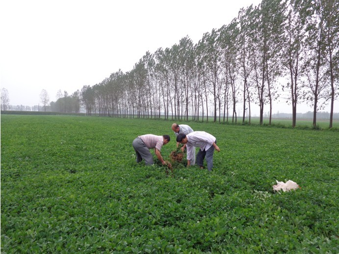 8月30日,在我院科技成果示范推广处的主持下,由河南省农业厅、河南农业大学、开封市农林科学院等相关单位的专家组成的专家组对院县共建项目区西平县盆尧镇陈老庄村百亩花生高产示范田进行实地测产。