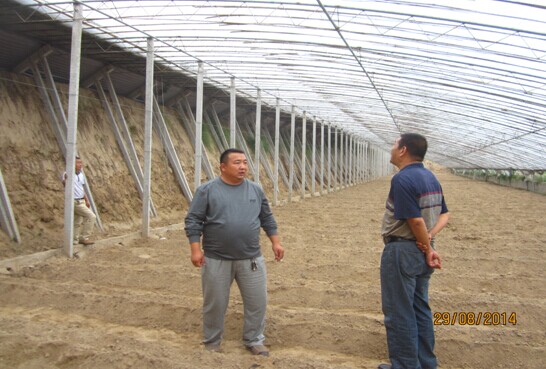 目前西华农科所在建温室3座,用于瓜类茄果类蔬菜冬春季育苗与示范展示。史宣杰一行实地考察过在建温室后指出,作为蔬菜育苗的温室应具备以下几点:⑴ 作为育苗温室,温室内地面需作处理,或水泥硬化,或石子铺设,或渗水防草地布,不做处理极易造成棚室湿度过大;根系下扎造成土传病害发生;杂草丛生。⑵ 配置加温设备,热风炉,通风钢管,温控仪⑶ 设置高架苗床⑷ 简易水净化设备、灌溉系统。针对温室用途提出以下建议:1座温室用于育苗并观察其蓄热保温性能,在温度较为适宜的秋季或春季育苗,尽量做自根苗,规避嫁接苗低温时期愈合困难风险;另外2座温室用作短茬模式我院新品种示范展示:建议1棚种植冬春茬嫁接黄瓜+早春茬嫁接黄瓜,冬春茬建议用博新316,早春茬用博杰619,另1棚种植番茄东风5号。