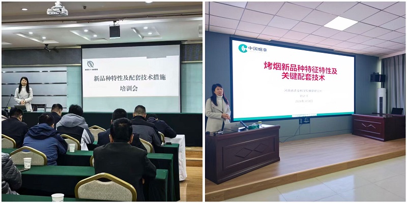 培训会上,育种研究室孙计平副研究员针对烤烟新品种豫浓香201、豫烟18等品种特性、配套要点进行深入浅出的讲解,引导烟农从传统种植技术向品种精细化管理,并提出豫浓香201、豫烟18育苗期技术指导意见:一是豫浓香201生育期短、对低温敏感,苗期不宜超过60天,苗床管理注意预防低温;二是豫烟18氮肥利用率高,含氮肥料可以减半施用。