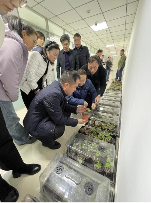 2025年11月17日,菏泽市牡丹区科协主席王文义、牡丹省级农高区副书记田艳丽、尧舜牡丹生物科技集团总经理李靖昊及菏泽市林业局、齐鲁工业大学、菏泽市农科院、菏泽学院等单位专家领导一行16人来访我所参观牡丹芍药组培快繁技术。园林花卉研究室主任符真珠博士对牡丹芍药组培关键技术环节向考察团进行了介绍,园艺所副所长张和臣就这一技术与考察团进行了深入交流,并达成初步合作意向。