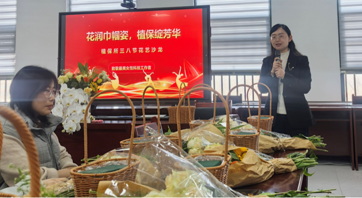 活动伊始,副所长王丽英代表所领导班子向全所女同胞们送上了最诚挚的节日问候与祝福,王所长表示,女职工是植保所科研事业发展中不可或缺的中坚力量,希望大家能在此次花艺活动中放松身心、陶冶情操,以更加饱满的热情投入到后续的工作中,绽放植保巾帼的别样芳华。