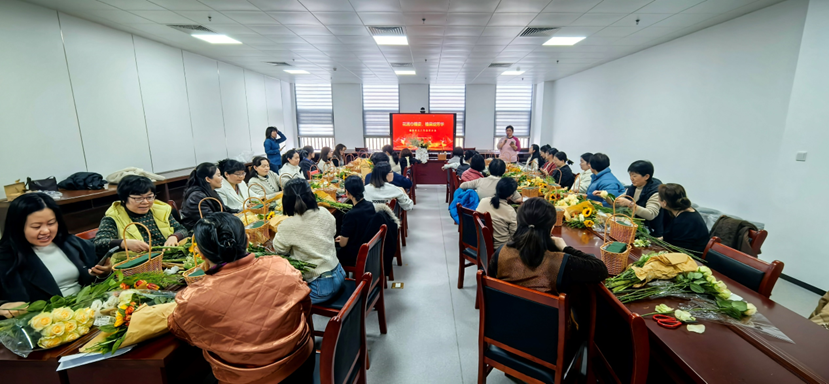 本次活动特邀专业花艺师以传统“12月花神”文化为切入点进行现场授课,详细讲解了插花造型设计、色彩搭配等实用技巧,分享从自然草木中汲取花艺灵感的方法。大家在花艺师指导下认真完成选花、剪枝、修叶、造型、配色等步骤,交流创作心得、切磋技艺,将对生活与美的理解融入插花作品中。活动最后,全体女职工手持插花作品合影留念,笑脸与鲜花相映,定格温馨美好瞬间。