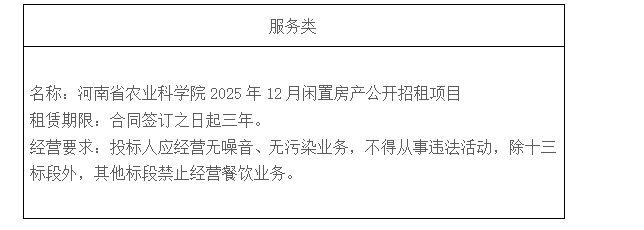 二、项目名称:河南省农业科学院2025年12月闲置房产公开招租项目
