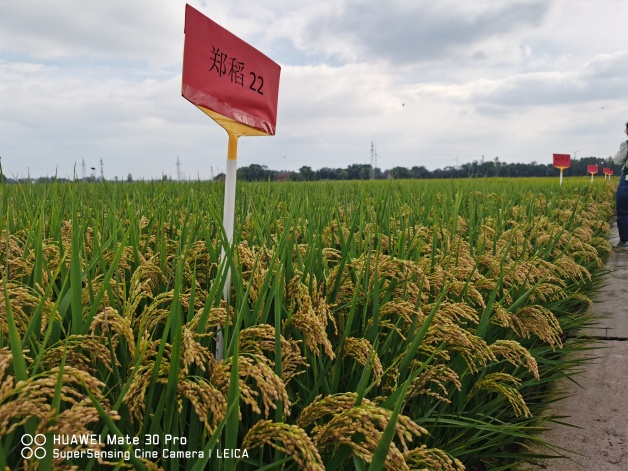 郑稻 22(审定编号:豫审稻 20241003)是河南省农业科学院粮食作物研究所选育的常规粳稻品种,全生育期158 天,株高103.8cm,株型紧凑,亩有效穗21.5万穗,每穗总粒数145.0粒,结实率85.1%,千粒重26.4g。2021年区域试验平均亩产稻谷626.0kg,比对照新稻18 号增产 4.8%。2022年续试平均亩产稻谷603.6kg,比对照增产4.1%。2023 年生产试验平均亩产稻谷614.1kg,比对照增产5.4%。郑稻22米质达部标优质二级标准,中抗稻瘟病,中抗纹枯病。适宜河南省稻区种植,包括豫北沿黄稻区及豫南稻区。
