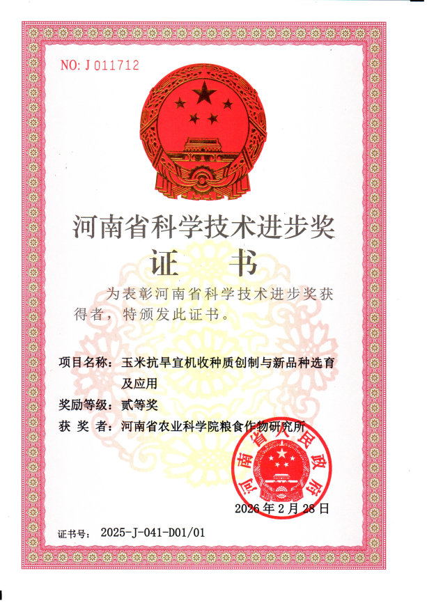 项目介绍:针对黄淮海地区夏玉米生产面临的持续高温干旱胁迫问题,团队系统构建了覆盖玉米苗期、花期及全生育期的抗旱与耐高温精准鉴定技术体系,配套建成集人工旱棚温室、田间自然鉴定、精准表型检测于一体的综合设施平台,包含2040㎡人工温室、1400㎡旱棚及两处各30亩田间鉴定基地,年可开展耐高温鉴定200份、抗旱鉴定150份。该技术平台可精准模拟多种逆境环境,实现玉米全生育期抗逆性状标准化、高通量鉴定评价,为种质资源筛选、抗性育种及品种测试提供稳定可靠的技术支撑。主持制定有《玉米杂交种花期耐高温热害鉴定评价技术规程》(DB41/T 1915-2019)、《玉米杂交种抗旱性鉴定技术规程》(DB41/T 1368-2017)等省级技术标准;相关核心鉴定技术成果先后获河南省科技进步二等奖2项。
