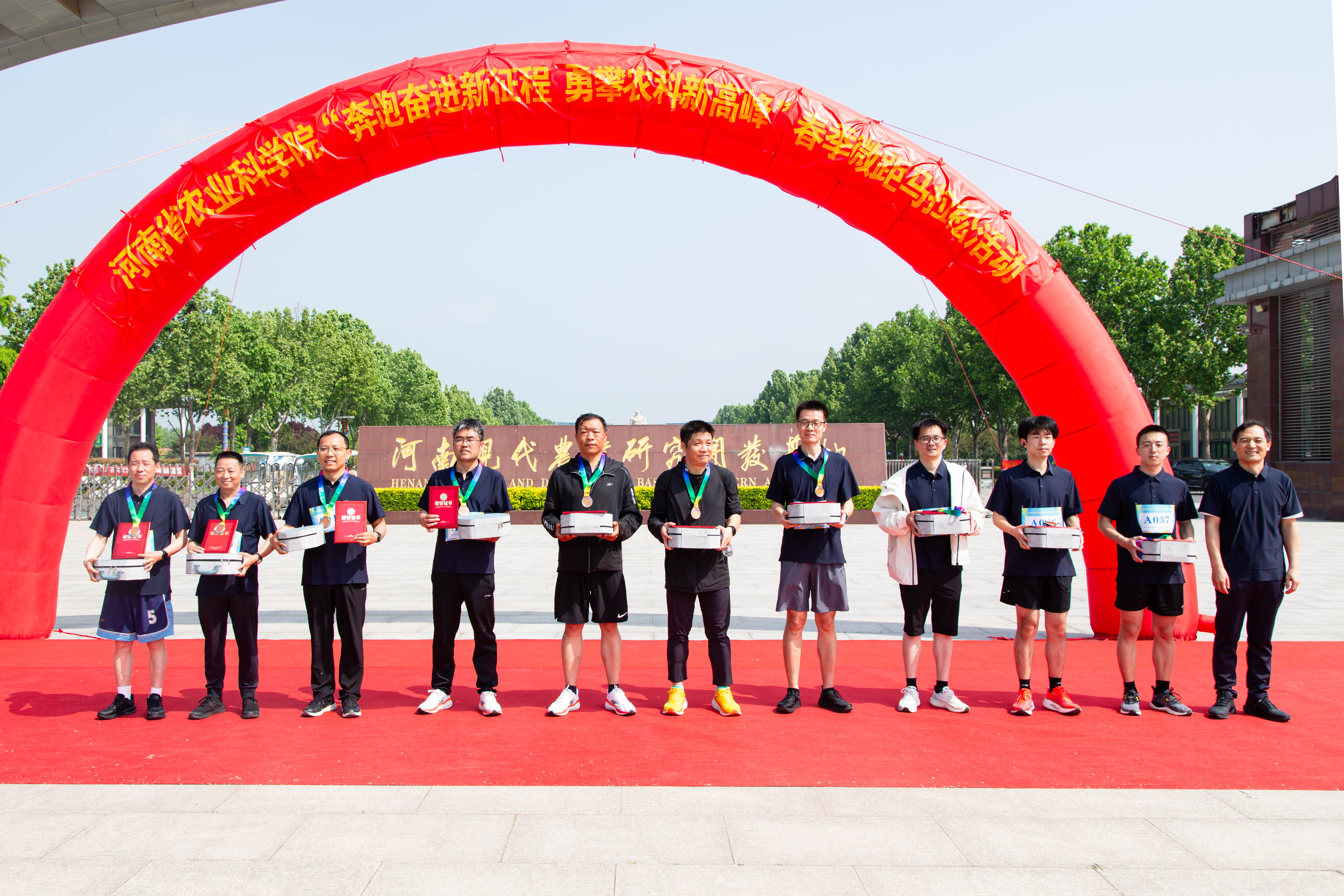 4月23日上午,为丰富全院干部职工精神文化生活,倡导健康向上的生活方式,凝聚干事创业的奋进力量,河南省农业科学院“奔跑奋进新征程 勇攀农科新高峰”春季微距马拉松比赛在河南现代农业研究开发基地顺利举办。院党委副书记、副院长王强,院党委委员、副院长韩启忠参加活动。全院120余名干部职工报名并参加比赛。