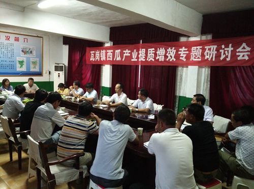 7月14日,园艺所所长徐小利研究员出席确山县瓦岗镇西瓜产业提质增效专题研讨会,河南农业大学园艺学院副院长马长生、驻马店市农业局蔬菜办主任孔亚丽、驻马店市农业科学院蔬菜所所长姜俊、驻马店市农业推广协会会长许时伦、瓦岗镇政府书记马中山、镇长王双全及西瓜种植户代表共计20余人参加了会议。