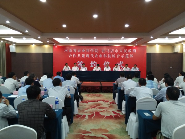 为加快我省农业供给侧结构性改革,在驻马店培育全省“四优四化”发展典型,在院市双方充分对接的基础上,5月26日,我院与驻马店市人民政府在驻马店市共同举行院市合作共建“现代农业科技综合示范区”签约仪式。中国工程院院士、我院院长张新友、院党委书记魏蒙关、副院长乔鹏程,驻马店市市委书记余学友、市长陈星、副市长张昕、付自成和市政协副主席郑玉林出席签约仪式。签约仪式由驻马店市市委书记余学友主持。