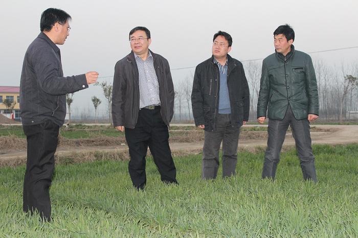 2月23日,省农科院推广处处长田云峰、副处级调研员黎世民及小麦专家吴政卿研究员一行,到罗山综合示范县检查指导2013年院县共建工作。在楠杆镇李寨村,田云峰处长实地查看了院县合作共建科技成果转化项目——小麦新品种郑麦9962高产创建技术集成与示范基地的建设情况,详细了解基地建设的全过程。