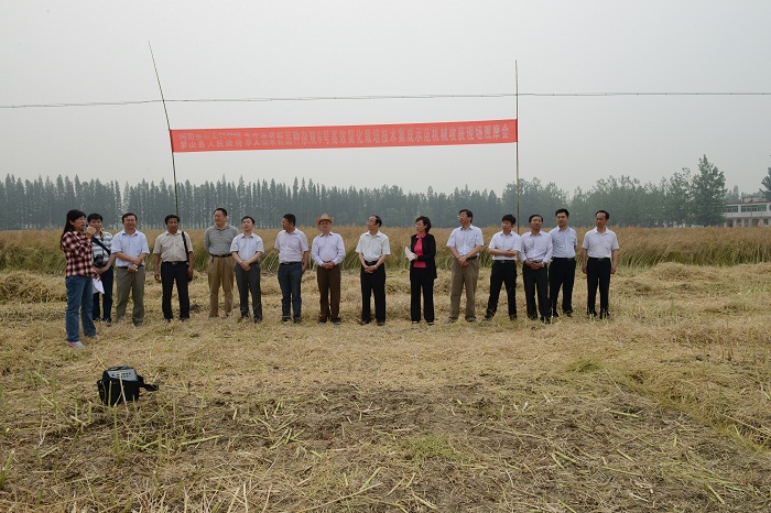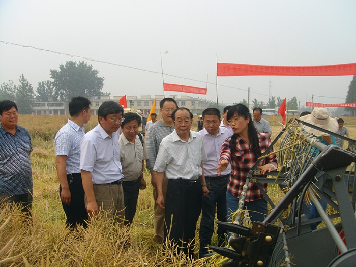 5月24日,我院在罗山综合示范县组织召开“杂交油菜新品种杂双6号高效简化栽培技术集成与示范”机械收获现场观摩会,马万杰院长,房卫平副院长,省政府参事、省科技厅副巡视员王志和,信阳市委副书记张春香等领导出席会议,省政府参事室刘庆跃处长,省农业机械推广站马勇站长,华中农业大学鲁剑巍教授,我院有关单位,信阳市农科院和罗山县委县政府及有关部门的负责同志和专家,来自罗山、固始、商城、光山、信阳平桥区、商丘睢阳区和遂平等9个县(区)农业部门技术人员、农民合作社种植户和河南豫研种子科技公司等企业代表共90余人参加了现场观摩会。会议由院推广处田云峰处长主持。