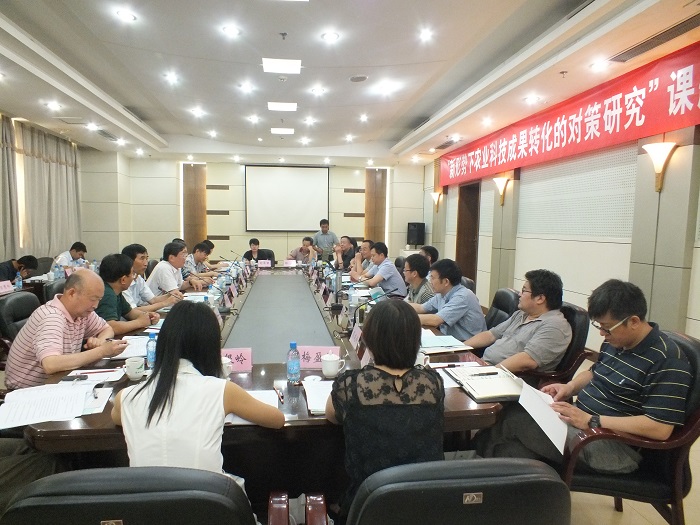 6月17日,农业部科技发展中心在郑州举行“新形势下农业科技成果转化的对策研究”课题工作会议。农业部科教司王青立处长,农业部科技发展中心段武德主任、聂善明副主任,我院房卫平副院长,黑龙江省农科院王贵江副院长,湖北省农科院焦春海总农艺师等领导出席会议,来自农业部科技发展中心,中国农科院、中国水科院,黑龙江、湖北、江苏、广东4个省级农科院有关部门,《农业科技管理》编辑部,河南省农技推广站和我院推广处、农信所等单位负责同志和有关专家,以及我院5个现代农业综合示范县的科技副县(市)长等共38人参加了会议。会议由农业部科技发展中心成果转化处郭瑞华处长主持。