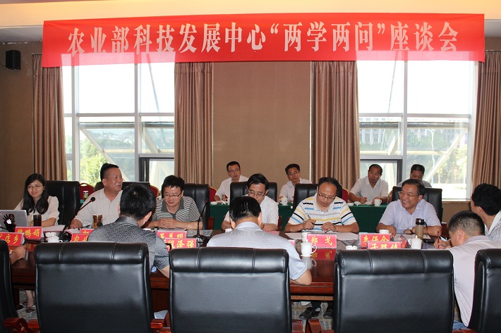 在实地考察的基础上,召开了“两问两学”主题实践活动座谈会。会议由科技发展中心成果转化处郭瑞华处长主持,罗山县人民政府副县长李焕伟致辞,科技副县长程泽强和县农业局、农科所主要负责人、农民合作社及家庭农场代表,分别汇报了院县合作共建、现代农业发展、农民合作组织建设、农业科技推广应用等方面所取得的成绩、存在的问题与建议,并对如何依靠科技培植优势产业、培训新型职业农民、增强农业抗灾能力、现代元素融入农业生产、家庭农场和合作社的规模与标准等问题进行了交流探讨。