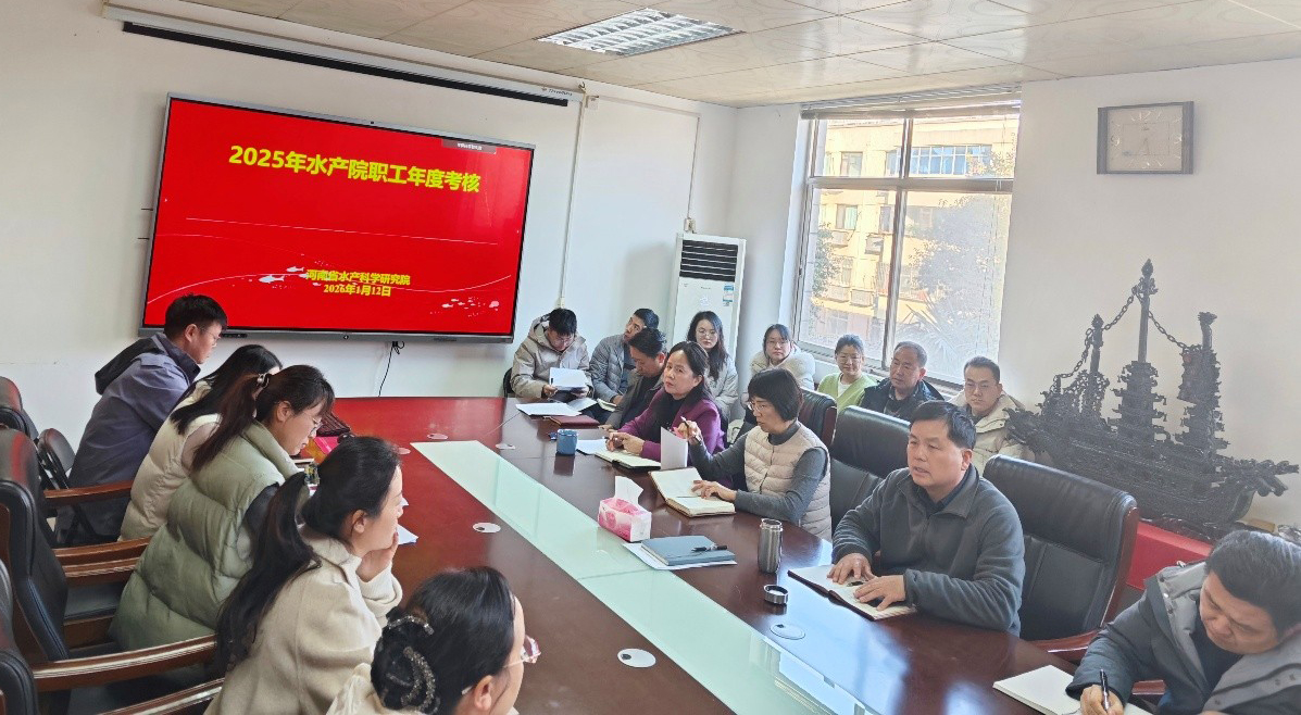 2026年1月12日,水产院组织召开2025年度职工考核。院长、院党支部书记吕军主持会议并作开场动员讲话,全体职工参加会议并述职。