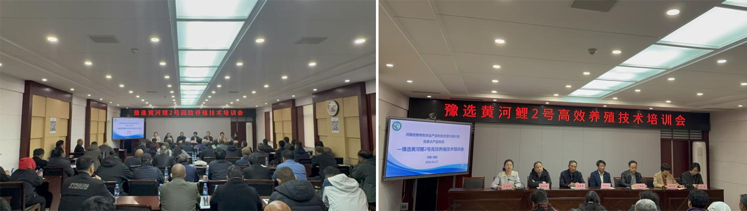 为持续扩大河南省 “优特计划” 优质水产品专项示范推广效应,推动豫选黄河鲤2号新品种高质量发展,2026年3月26-27日,由水产院主办、洛阳市孟津区农业技术推广服务中心协办的豫选黄河鲤2号高效养殖技术培训会在洛阳市孟津区石化宾馆顺利召开。洛阳市孟津区水产主管部门、技术推广机构、养殖企业、合作社及养殖户代表共97人参会。