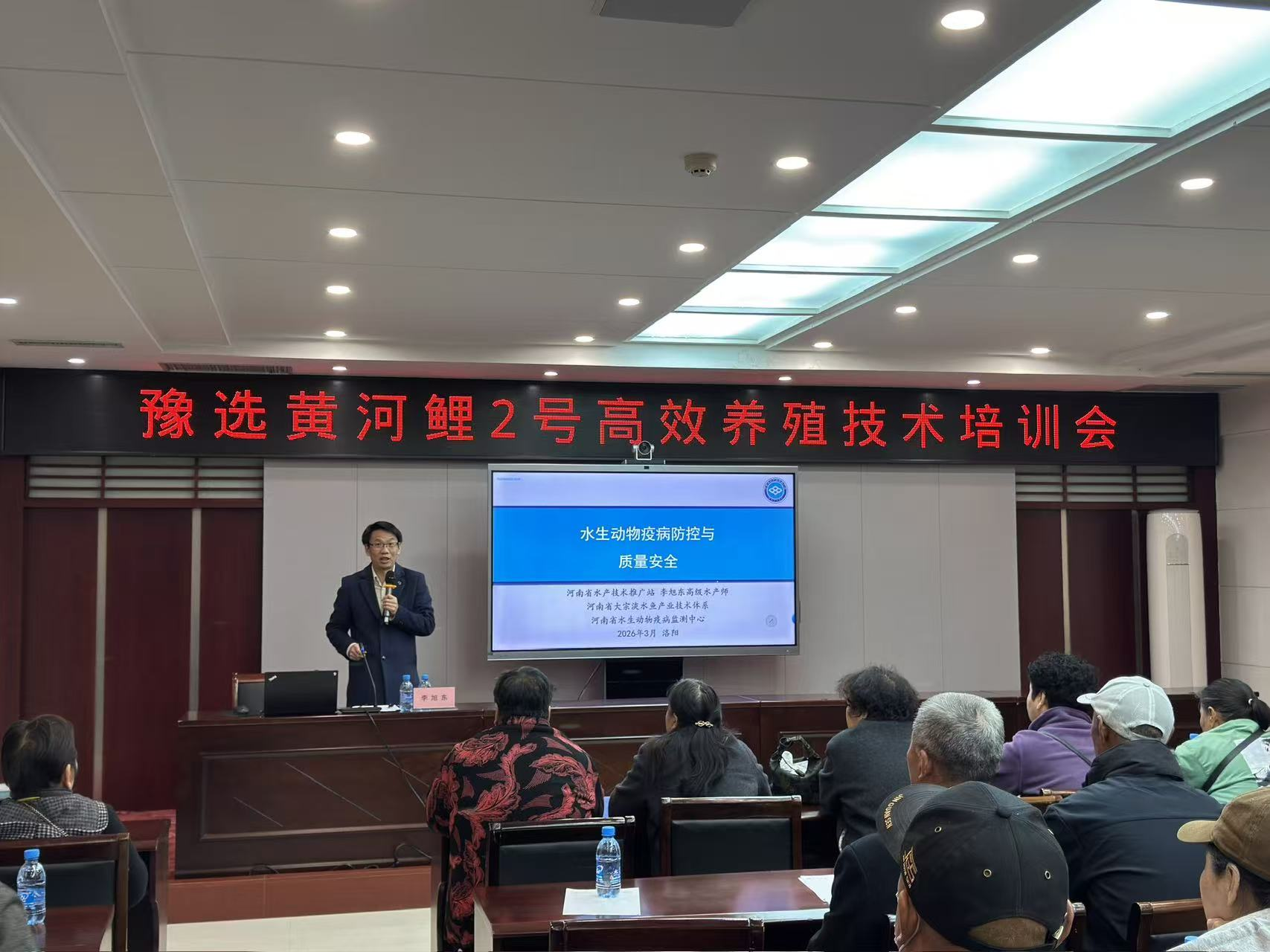 1.“水产养殖新品种新技术”由水产院冯建新研究员主讲,系统解读豫选黄河鲤2号品种特性、生长优势与配套养殖模式,为新品种推广提供核心技术依据。