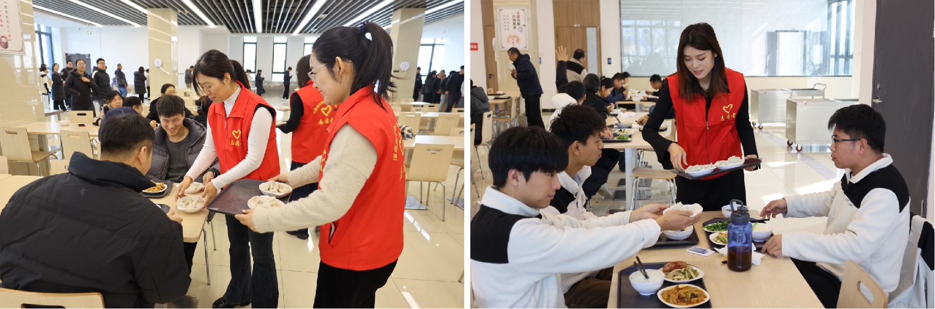中午就餐时,志愿者们将热腾腾的饺子送到了就餐职工的手中,为寒冷的冬日增添了一份暖意。