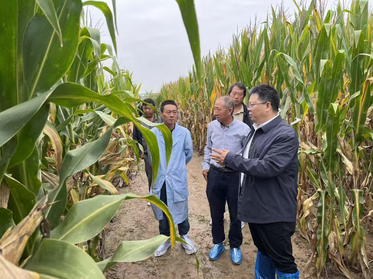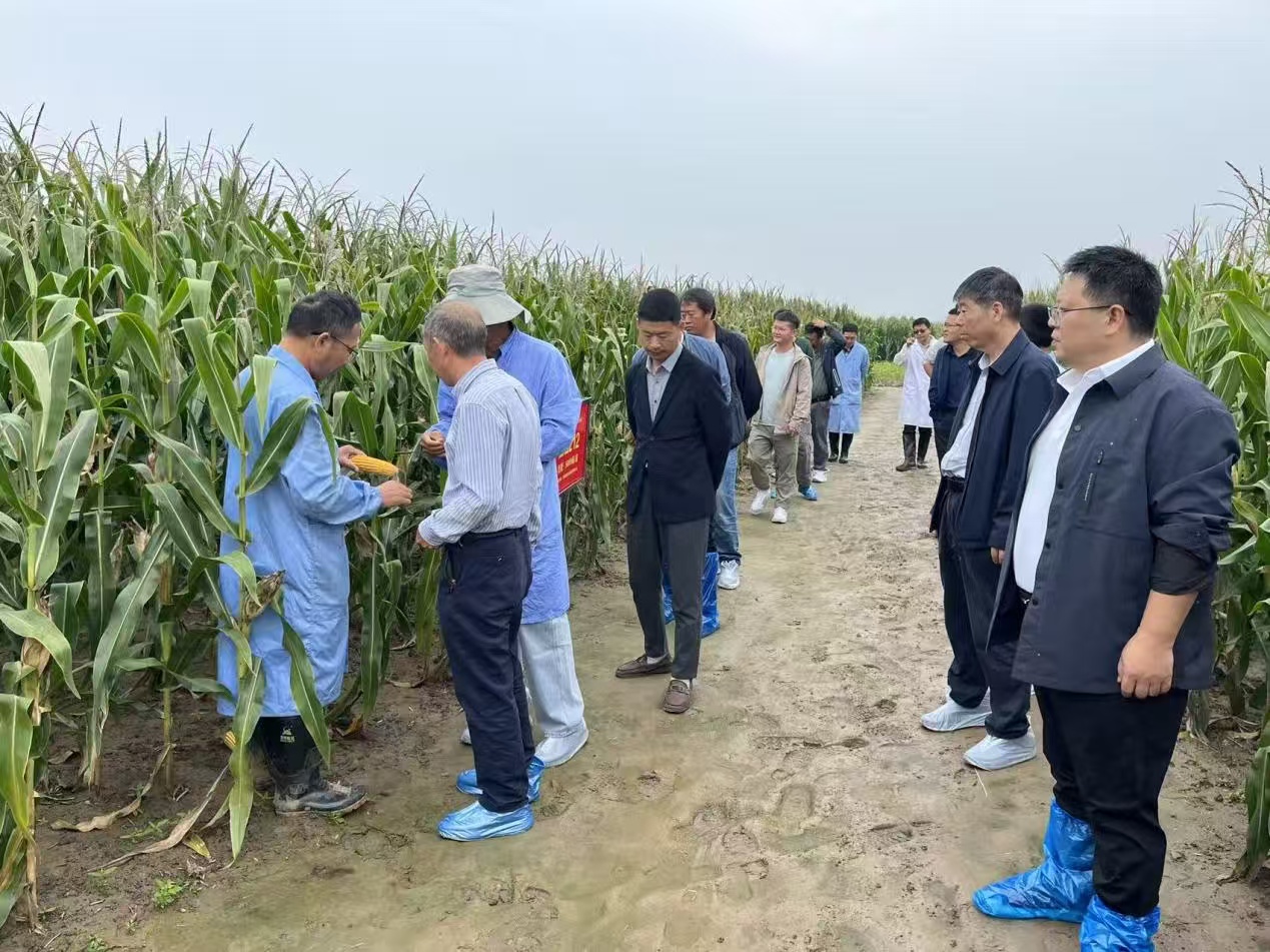 当日下午,在我所玉米育种室科技人员的陪同下,考察团一行赴河南现代农业研究开发基地,实地观摩了玉米新品种展示田。展示田集中呈现了黄淮海夏玉米区多个优良品种,包括河南省农科院的“郑单”系列、中国农科院的“中单”系列以及北京农林科学院的“京科”系列等代表性品种。期间,考察团重点查看了由双方合作选育的优良品种“郑单111”的田间表现。该品种株型整齐、结实性好,表现出良好的适应性及较高的产量潜力,赢得了与会专家的广泛认可与好评。双方科研人员围绕品种特性、区域适应性和栽培要点等内容开展了深入交流,为进一步深化合作奠定了坚实基础。