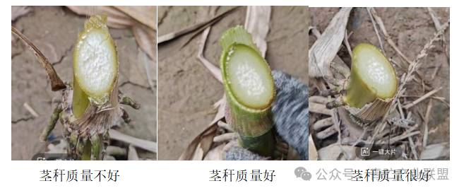 茎:要有儒气,“硬、脆、韧”兼顾,粗细适中,适宜中庸之道。太硬易折,木质化过高,酸性洗涤纤维不达标。着力解决拔节期的“脆”,bm基因黄淮海慎用,因为真的“脆”。茎,可粗可细,不挑。讲究“实芯”且水份充足(成熟期,茎基部)。