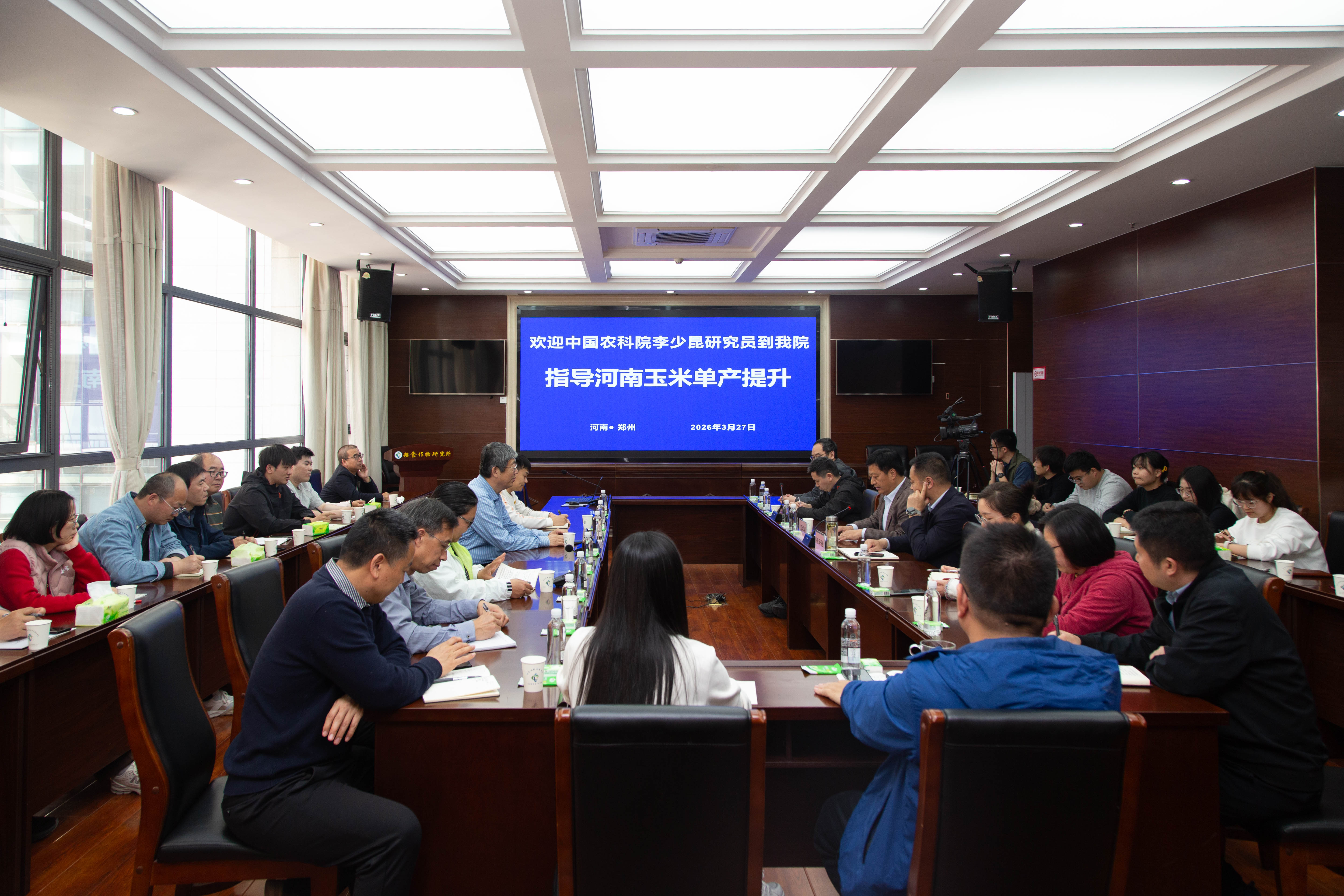 3月27日,为深入贯彻落实"十五五"新一轮千亿斤粮食产能提升行动战略部署,推动玉米大面积单产提升关键技术攻关与推广应用,我所特邀中国农业科学院作物科学研究所栽培与生理团队资深首席科学家、全国玉米单产提升工程专家组组长李少昆研究员来我所开展学术交流,并作《玉米大面积单产提升技术》专题报告。院科研处、粮作所、资环所、植保所以及院县共建专项、河南优特计划优质秋粮专项相关科研人员参加报告会。