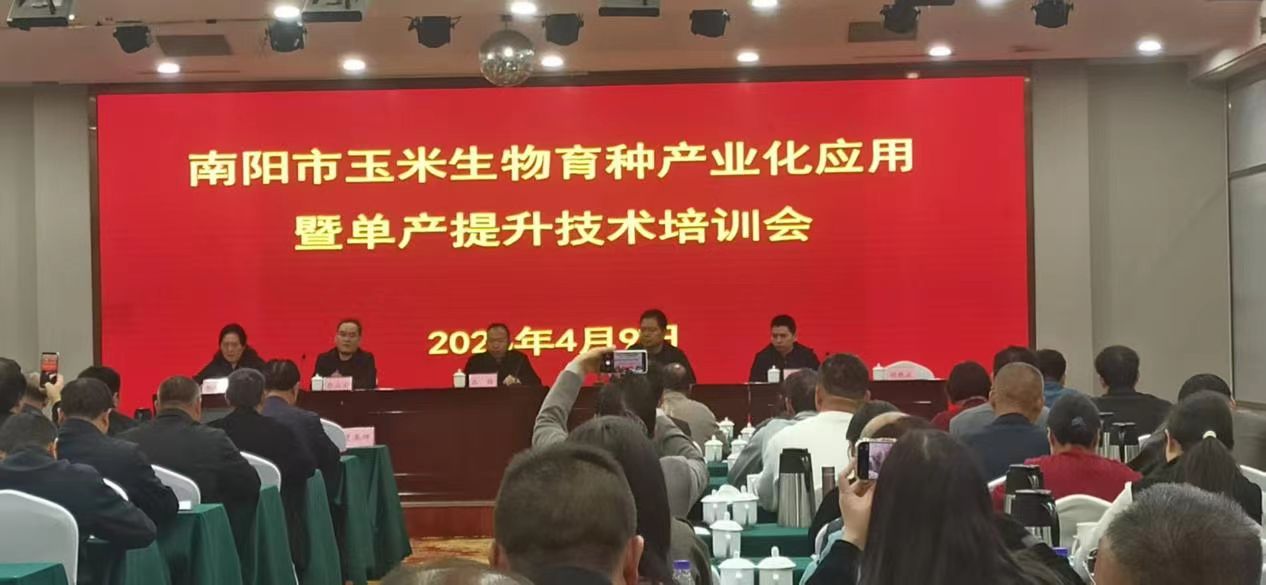 本报讯(记者 郭俊娟 通讯员 董鹏)4月9日,由南阳市科学院主办的“南阳市玉米生物育种产业化应用暨单产提升技术培训会”在南阳举行。来自河南省农业科学院、南阳市农业农村局、南阳市各县(市、区)技术骨干、企业代表、农民专业合作社负责人及种植大户等100余人参加会议。会议深入推进了基层农技推广体系改革与建设项目实施,加快了玉米生物育种产业化应用步伐,致力于全面提升玉米大面积单产水平,增强现代农业科技推广服务效能。