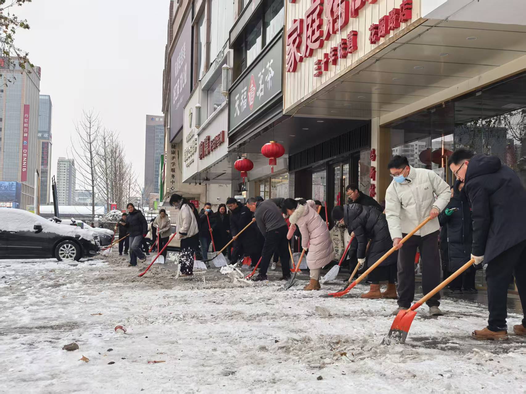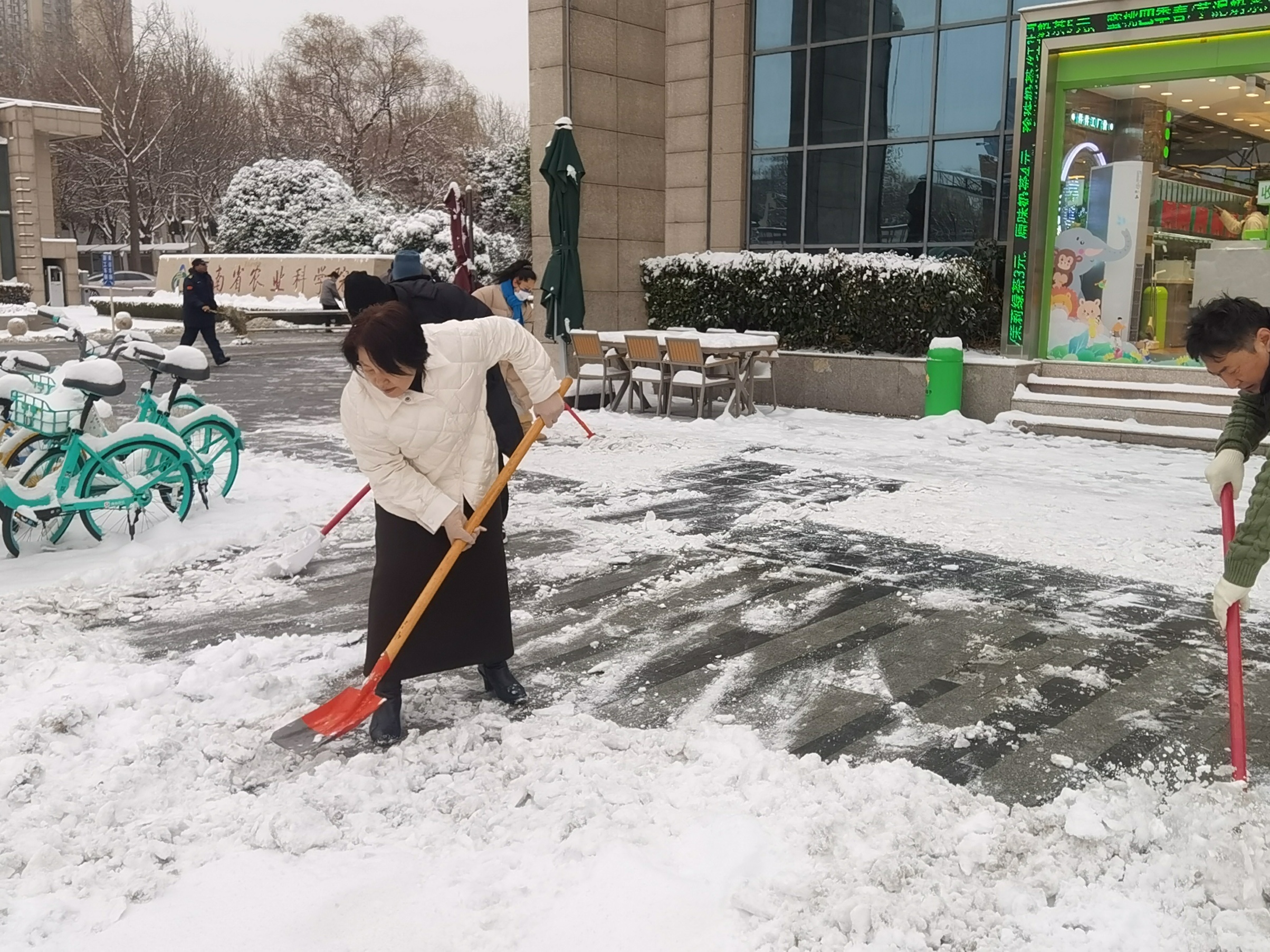 除雪结束后,全体职工在创新楼前合影留念。大家纷纷表示,今后将继续发扬不怕苦、不怕累的精神,积极投身各类文明创建与志愿服务活动,用实际行动为建设文明、和谐、美丽的郑州贡献经作所力量,以责任与担当诠释全国文明单位的初心与使命。