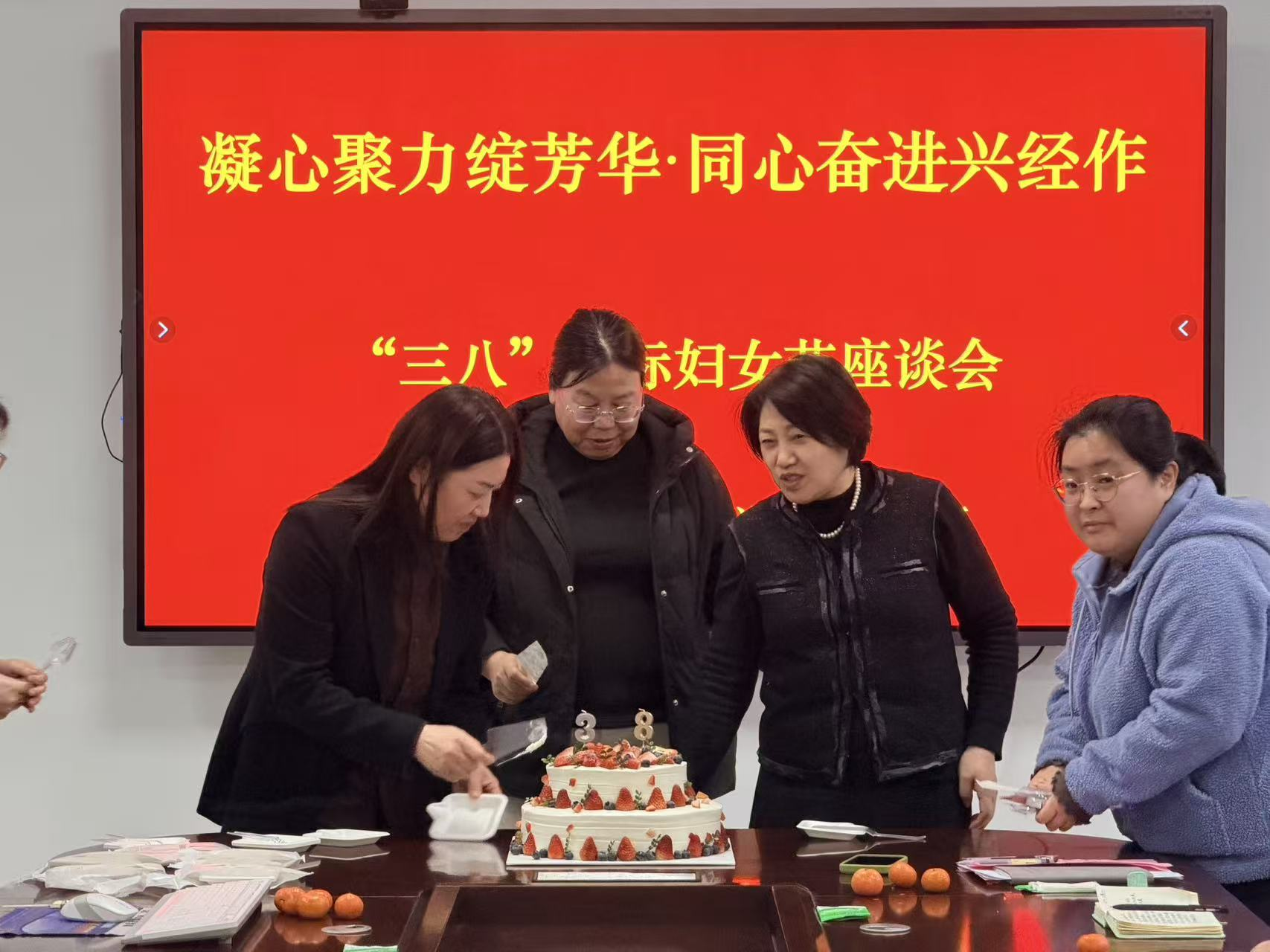 座谈结束后,活动进入甜蜜分享环节。大家共同切蛋糕、品甜点,品尝清甜的砂糖橘,在欢声笑语中传递着节日的温暖与集体的关怀,活动在温馨和谐的氛围中圆满落幕。