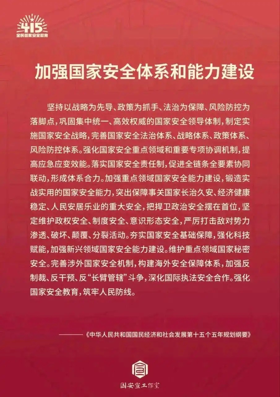 2026年4月15日是第十一个全民国家安全教育日,今年的主题是“统筹发展和安全,护航‘十五五’新征程”。国家安全是安邦定国的基石,是人民安居乐业的根本保障,与每个人的生活息息相关。