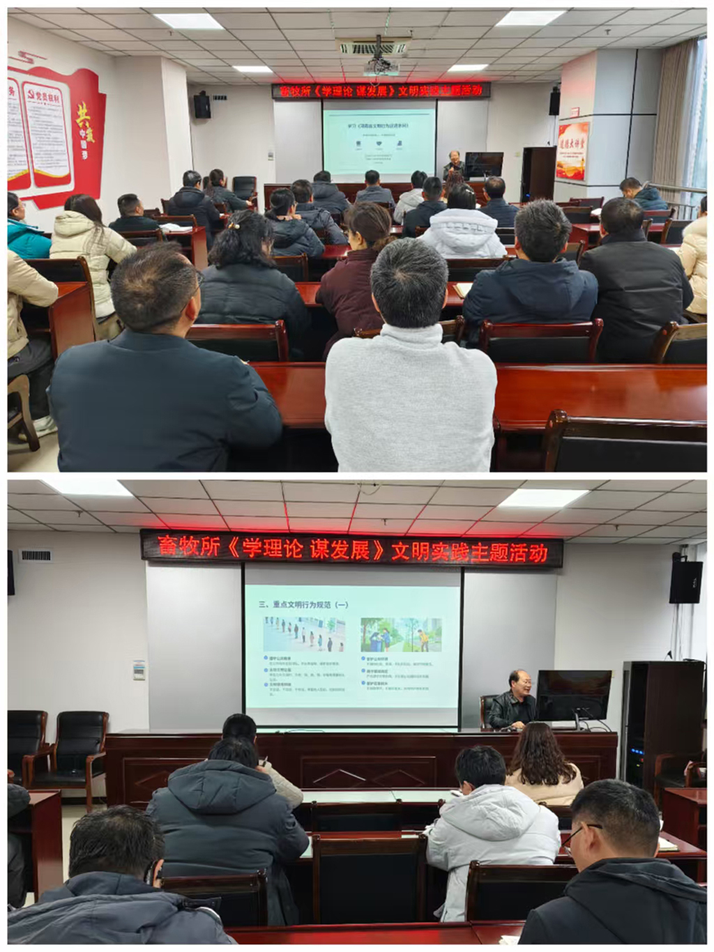 在践行文明实践、传递温暖的同时,为进一步强化全体职工文明素养,夯实文明建设思想基础,3月4日下午,畜牧所组织全体职工开展“学理论 谋发展”文明实践主题活动,邀请新时代宣讲师陈直研究员作专题宣讲,系统解析《河南省文明行为促进条例》核心内容与相关要求。
