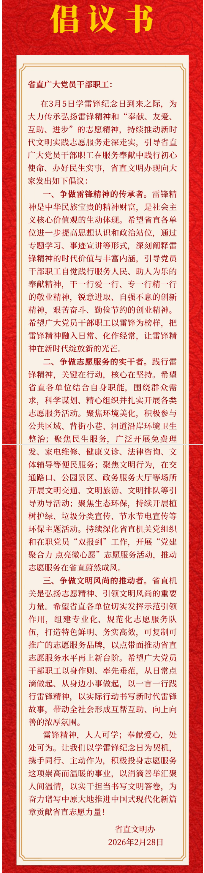 致省直广大党员干部职工的倡议书