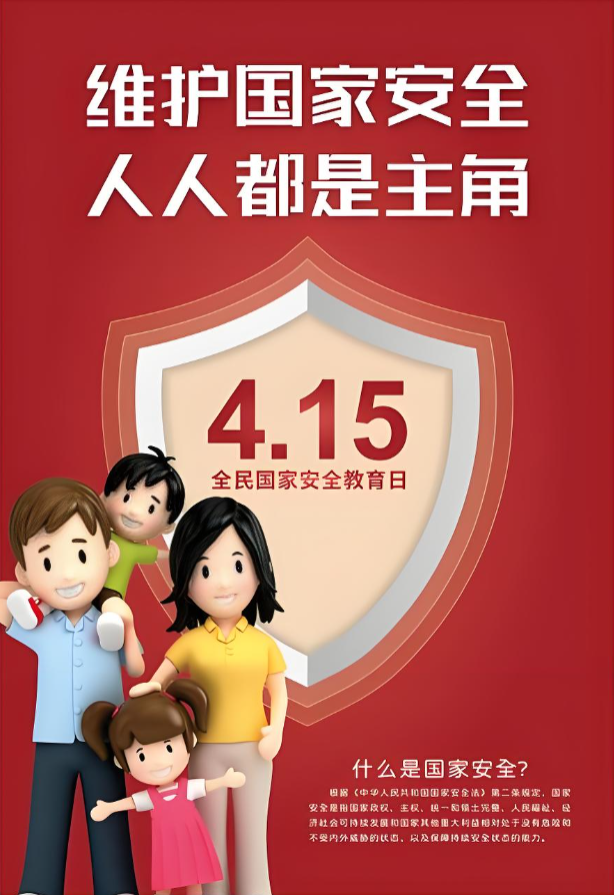 全民国家安全教育日(National Security Education Day),是中国为了增强全民国家安全意识,维护国家安全而设立的节日。时间为每年的4月15日。国家安全是指国家政权、主权、统一和领土完整、人民福祉、经济社会可持续发展和国家其他重大利益相对处于没有危险和不受内外威胁的状态,以及保障持续安全状态的能力。