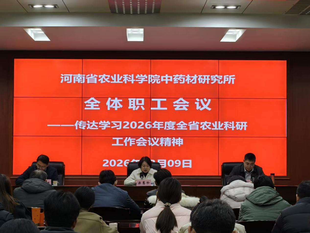 结合我所实际,会议就贯彻落实全省农业科研工作会议精神提出要求:全体职工要深入学习领会会议精神,准确把握2026年我所科研工作的目标方向与重点任务。要聚焦主责主业,在中药材育种、关键技术攻关、成果示范推广等领域主动作为,力求取得新突破。要进一步强化协同创新意识,积极争取对外合作。要以扎实的作风和正确的政绩观,推动各项工作落地见效,为农业科技创新与乡村全面振兴贡献更大力量。